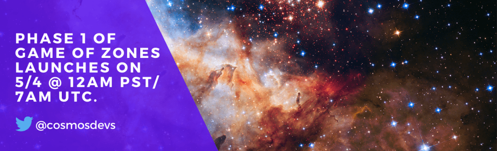 To ensure that all participants are aware of official start time for Phase 1, we will be sending an email and sharing this information across our official Game of Zones channels. If you have any questions about these changes, the best way to get in touch is to send us an email at gameofzones@cosmosnetwork.dev or join us on Friday, May 8th for our Phase 1 Live Stream.